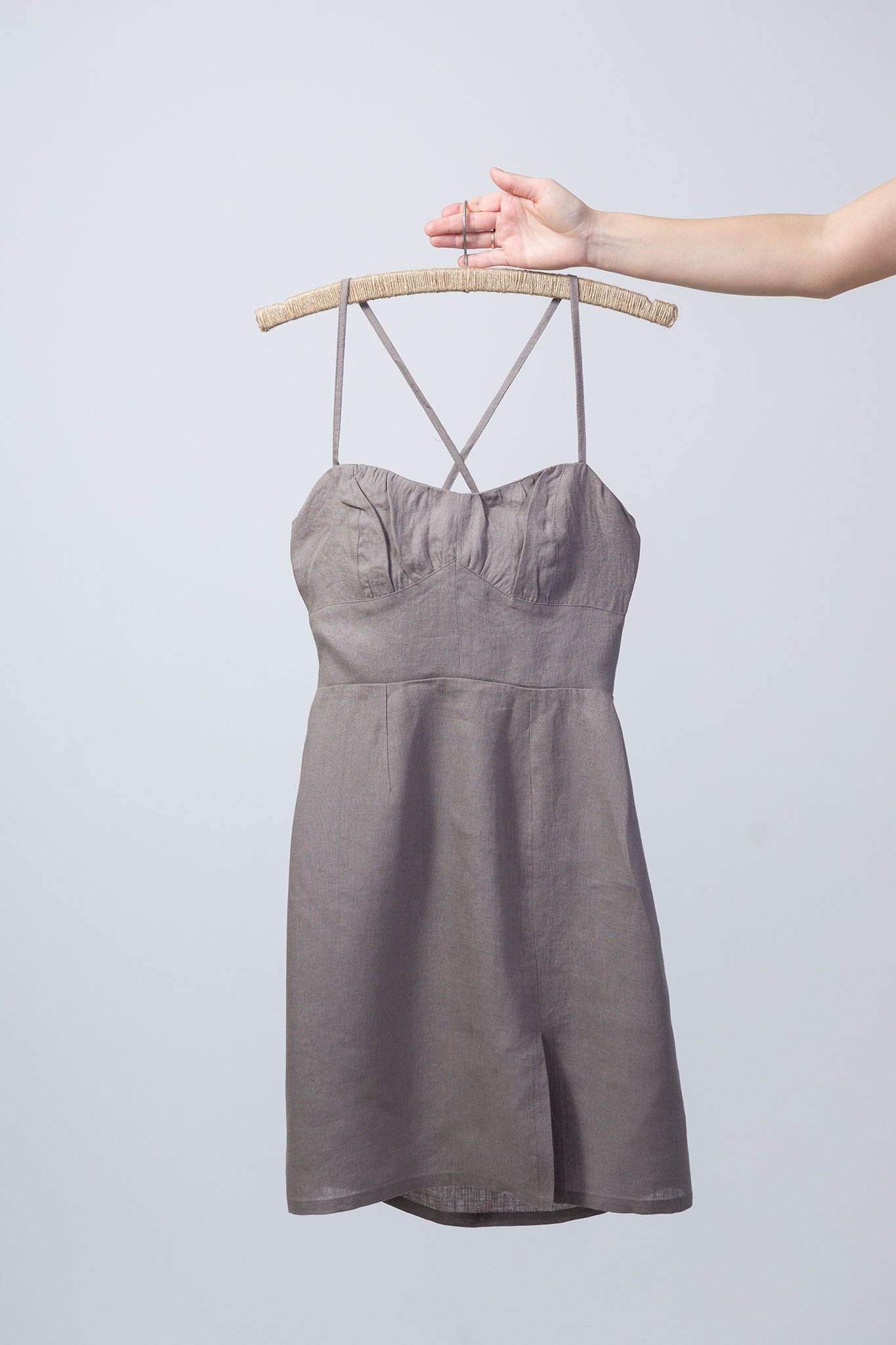 Sukienka zaprojektowana od podstaw w Polsce, wyszyta z dbałością o każdy detal w zaprzyjaźnionej lokalnej szwalni. Najwyższej jakości lniana tkanina* w kolorze brązu z domieszką szarości.